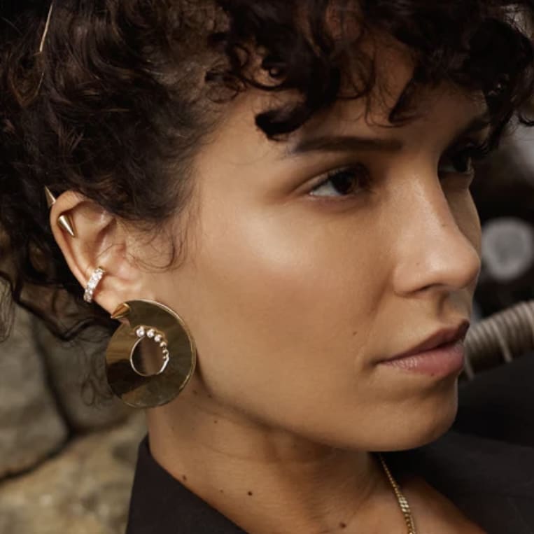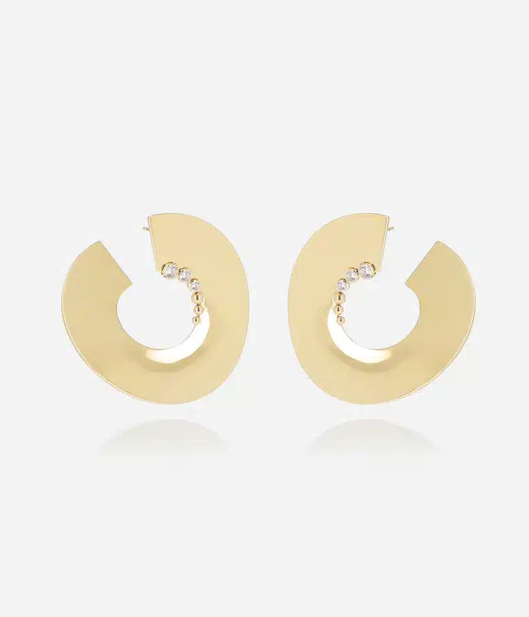 Boucles d’oreilles en acier doré à l’or fin par ionisation représentant un cercle désaxé lisse. Il est serti de petites billes en acier et de zirconium au centre.