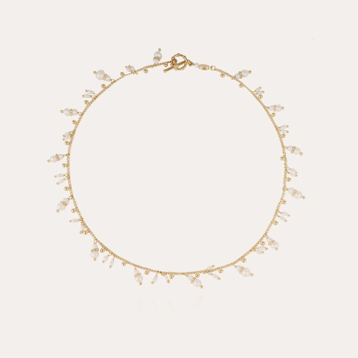 Collier doré à l’or fin composé d’une fine chaîne ornée de pierres fines nacres blanches choisies par nos artisans. Il est habillé d’un élégant fermoir travaillé.