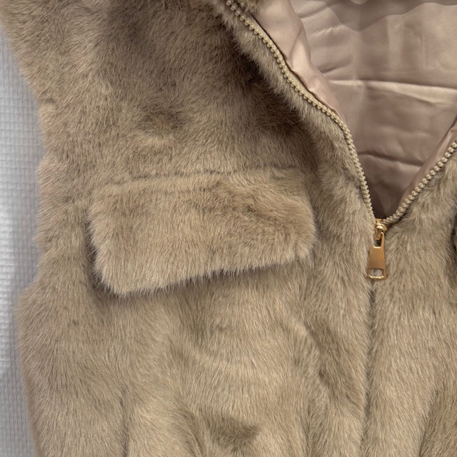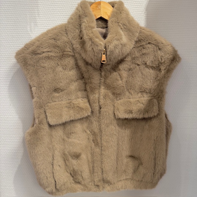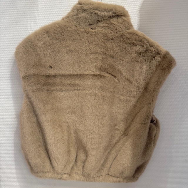 Gilet court en fausse fourrure avec une coupe droite zipé, col montant et sans manche. La fourrure de ce gilet a de très beaux reflets et est très douce. Idéal pour mettre sous un manteau ou porter à l’intérieur sur une chemise.