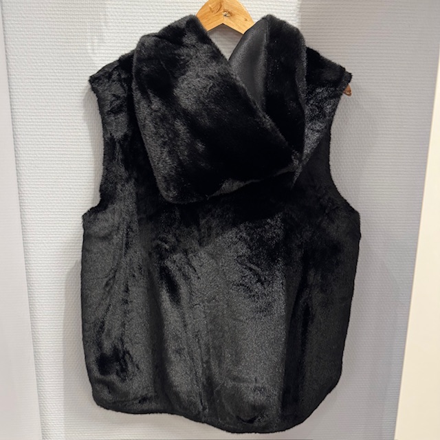 Gilet sans manches, en fausse fourrure imitation « vison ». Ce gilet zipé a une capuche, 2 poches plaquées et une doublure imitation cuir. La fourrure de ce gilet a de très beaux reflets et est très douce. Idéal pour mettre sous un manteau !