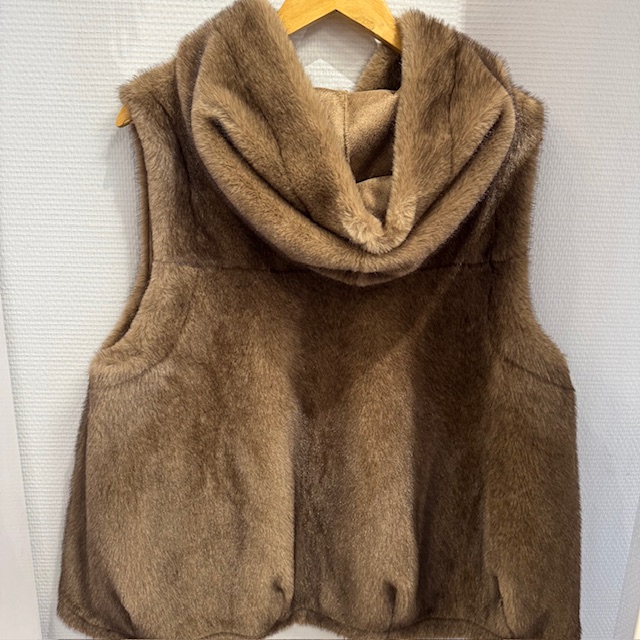 Gilet sans manches, en fausse fourrure imitation « vison ». Ce gilet zipé a une capuche, 2 poches plaquées et une doublure imitation cuir. La fourrure de ce gilet a de très beaux reflets et est très douce. Idéal pour mettre sous un manteau !