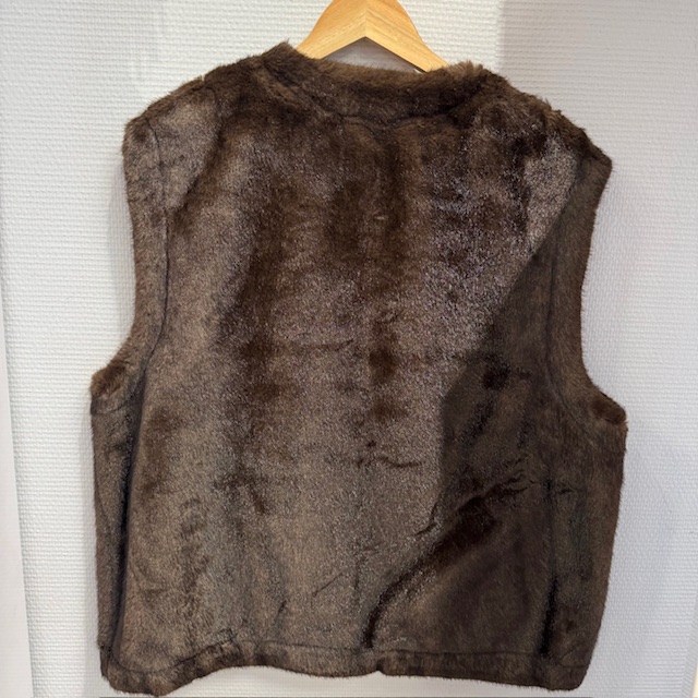 Gilet col rond, sans manche en fausse fourrure imitation « vison ». Ce gilet a 2 poches plaquées, une doublure imitation cuir et se ferme avec des boutons pressions. La fourrure de ce gilet a de très beaux reflets et est très douce. Idéal pour mettre sous un manteau ou porter à l’intéruer sur une chemise.