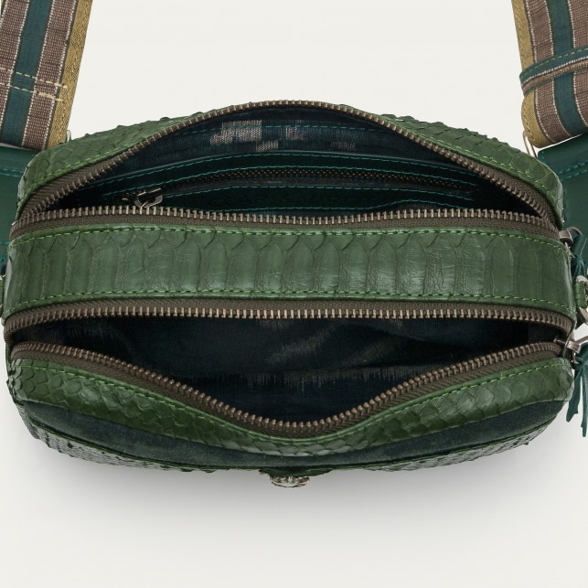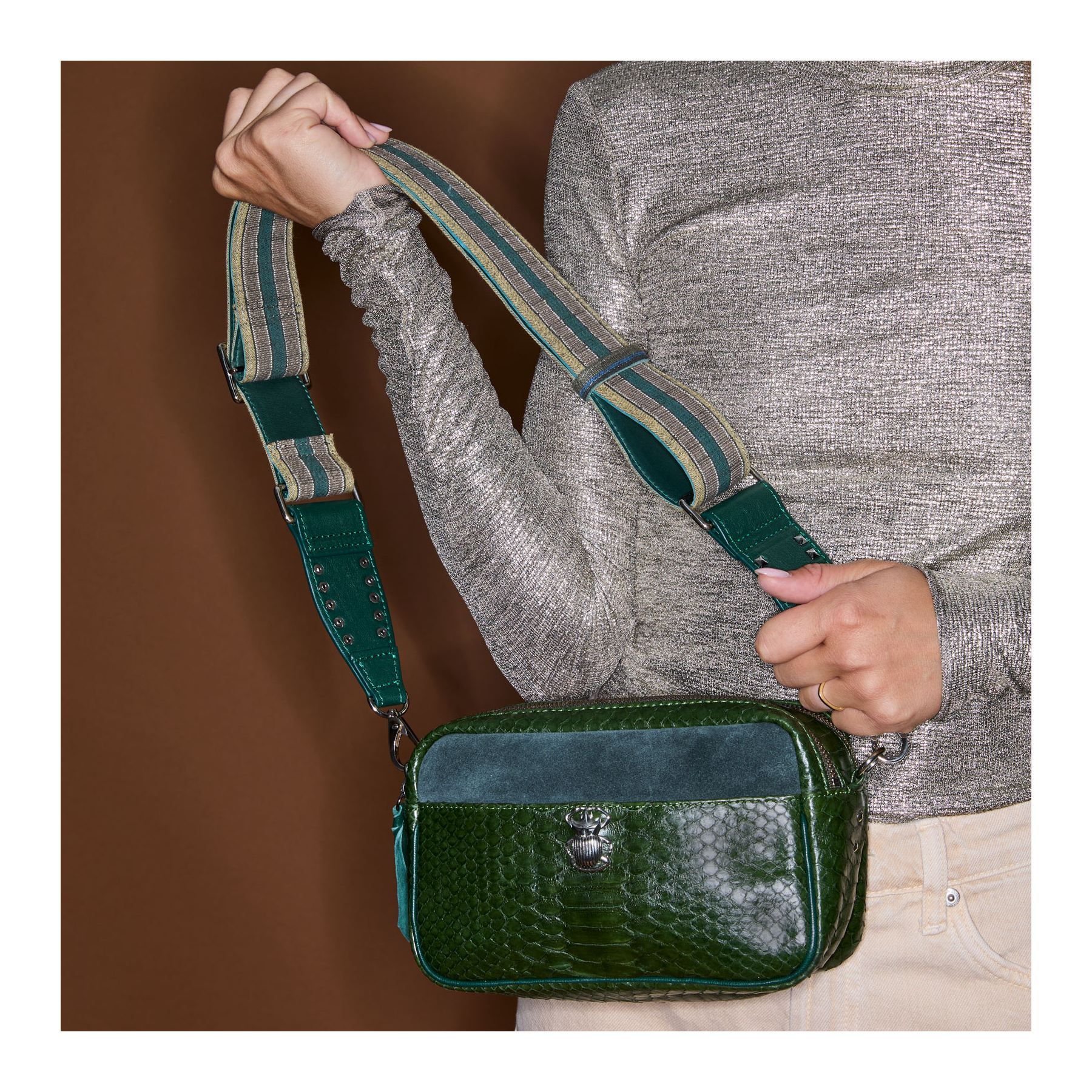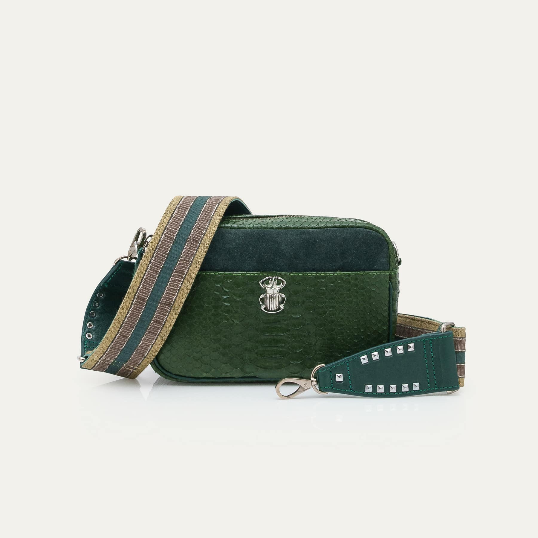 Ce sac en python et agneau velours porté épaule ou croisé est organisé en deux compartiments avec une poche centrale parfaitement étudiée pour y accueillir votre téléphone. Ses deux compartiments distincts ont été pensés afin de vous organiser au mieux! Enfin, sa large bandoulière en tissu Timor permet un porté confortable et léger. Dès l’Antiquité en Égypte, le scarabée incarne la résurrection et plus précisément le soleil, qui renaît de lui-même. Encore aujourd’hui, sa symbolique de protection et d’énergie intérieure perdure. Il est d’ailleurs couramment porté sous forme d’amulette. Un totem puissant qui accompagne et protège au quotidien.