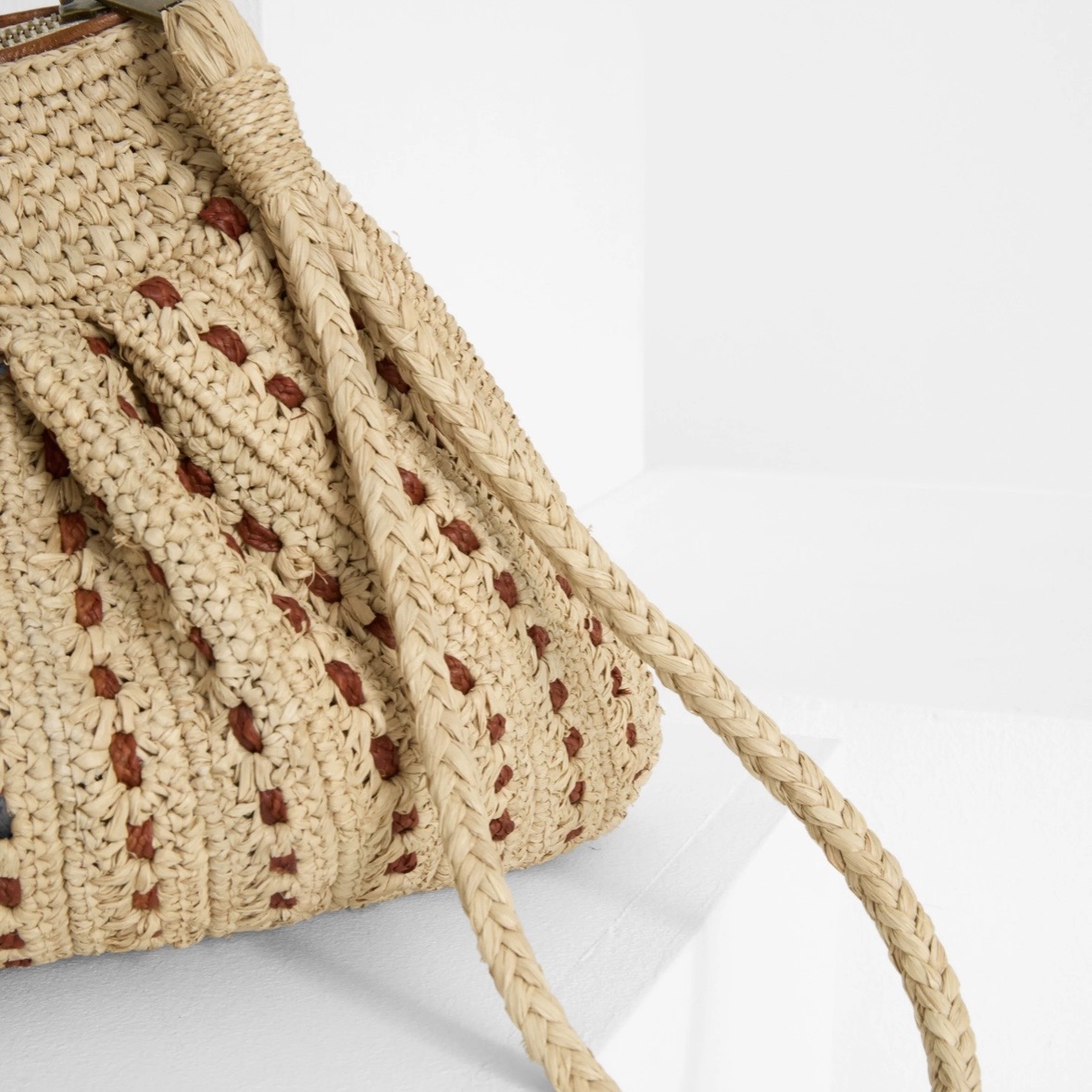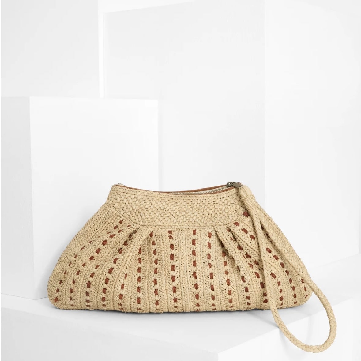 Découvrez MEZZO, une pochette en raphia au style raffiné qui apporte une touche de chic naturel à toutes vos tenues.