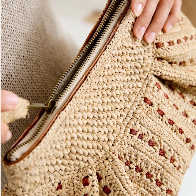 • Sac pochette 100 % raphia