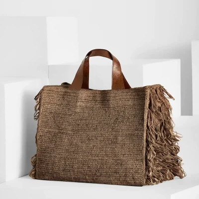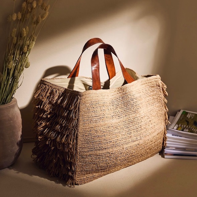 Matières : 100% en raphia naturel, ce sac doublé en coton bio allie souplesse et solidité d’une matière naturelle et durable. Les deux poignées sont en cuir de zébu tanné selon un procédé végétal