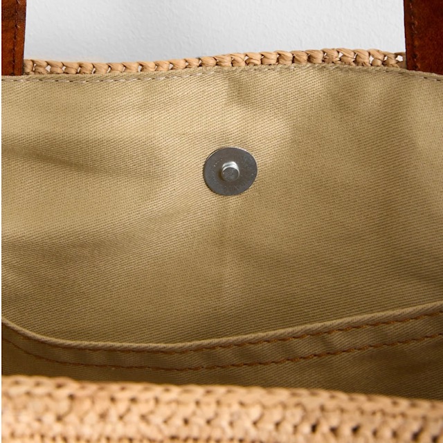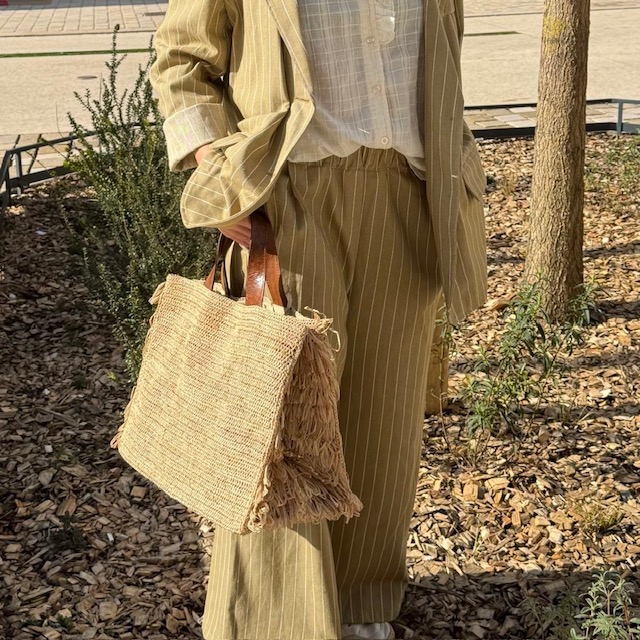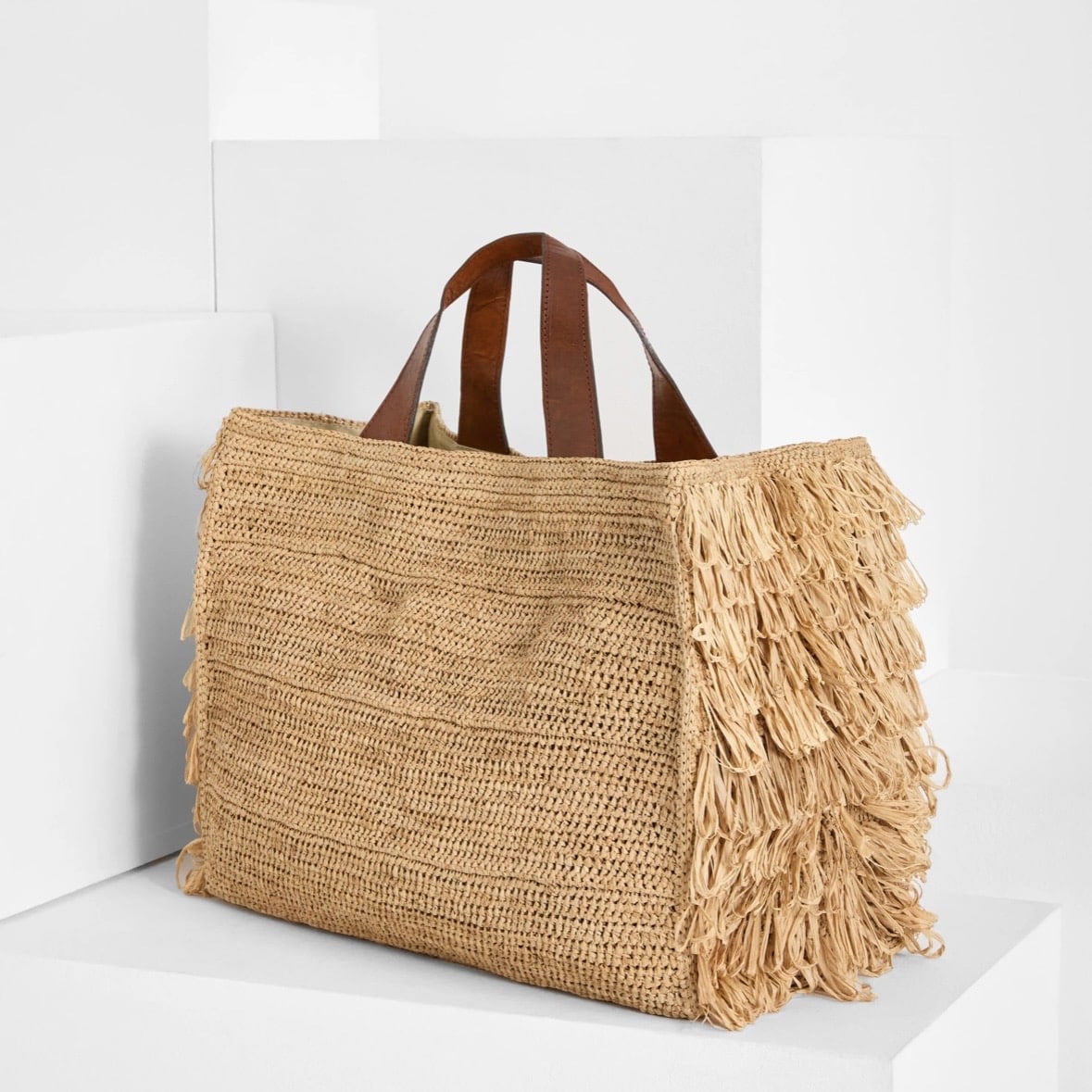 Matières : 100% en Raphia naturel, ce sac doublé en coton bio allie souplesse et solidité d’une matière naturelle et durable. Les deux poignées sont en cuir de zébu tanné selon un procédé végétal