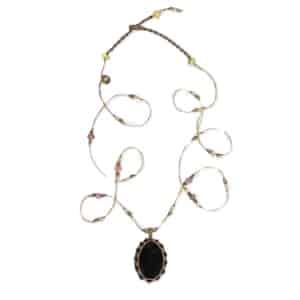 Pendentif en onyx noir sur un fil résistant de couleur beige, associé à des perles de tourmaline. L’onyx noir est une pierre de protection des ondes et influences négatives. Elle contribue à renforcer l’estime de soi, la confiance et le self contrôle. Bijou réalisé à la main.